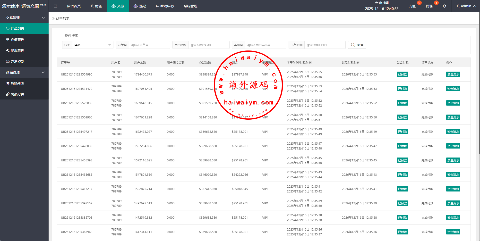 系统支持信用分,连单卡单等功能