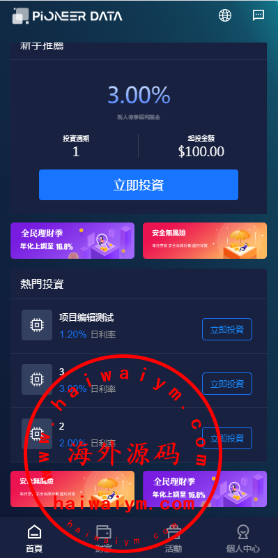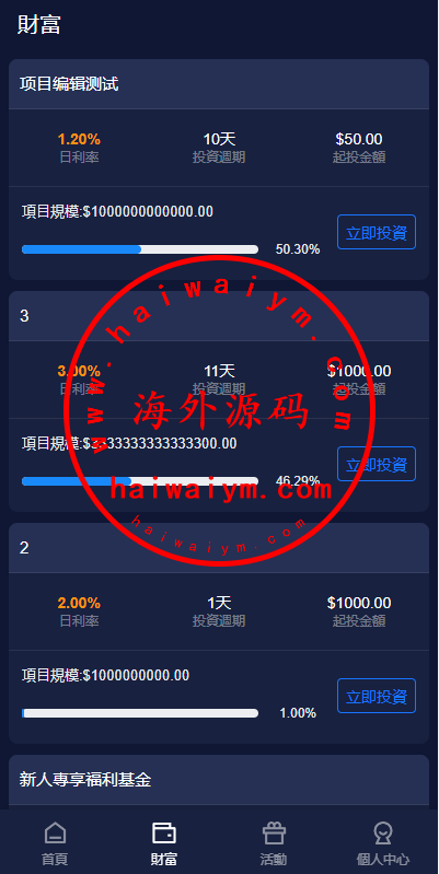 新版UI海外投资理财系统/多语言投资源码/投资众筹系统