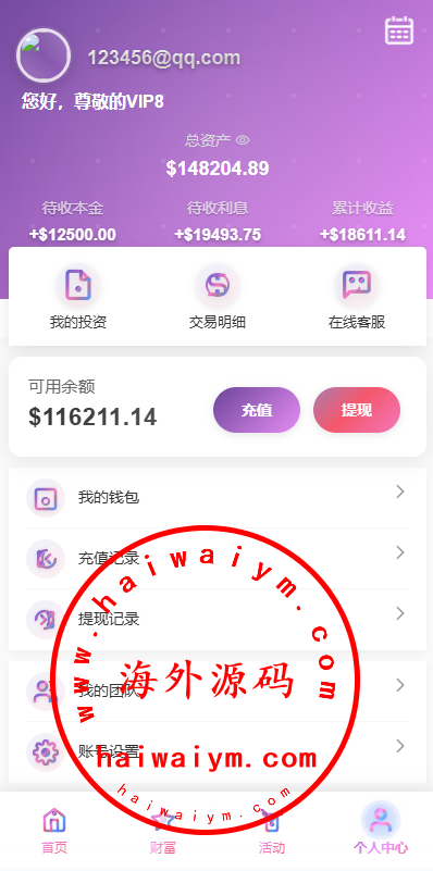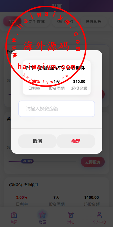 多语言投资理财系统/新能源投资返利/海外投资众筹系统
