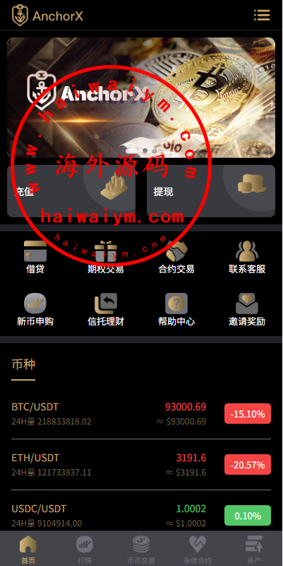 新版虚拟币交易所系统,前端uniapp开发后端php开源带教程系统功能:币币交易,期权交易,永续合约,申购,贷款,矿机理财