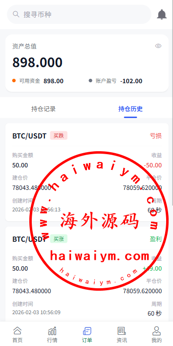 多语言虚拟币微盘系统/秒合约交易/信用分/实名认证