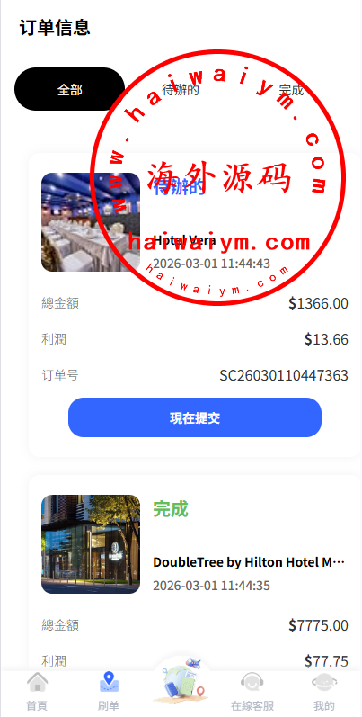 多语言酒店抢单刷单系统/卡单连单/信用分/海外刷单