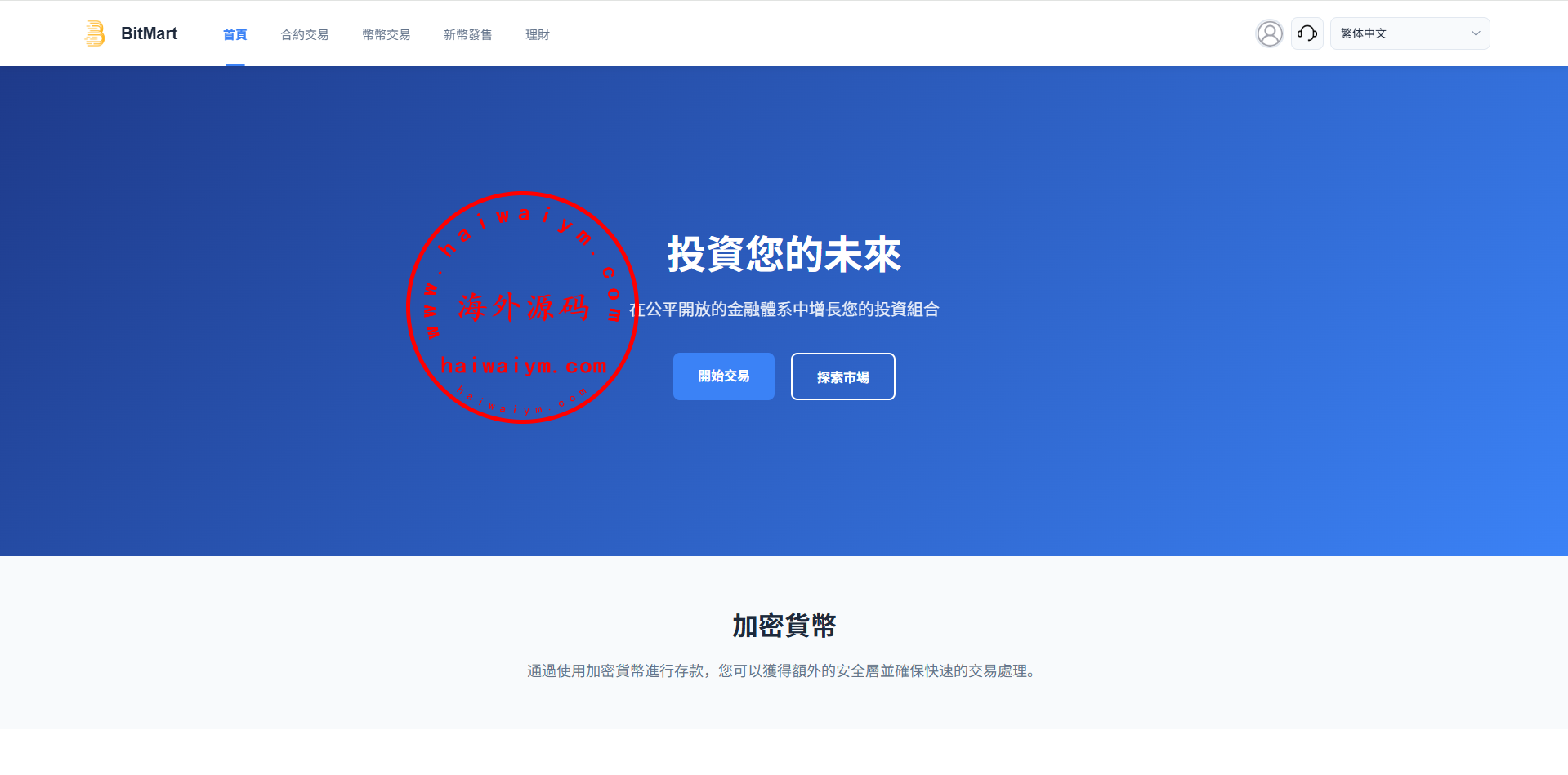 支持秒合约合约交易币币交易平台币认购、理财等