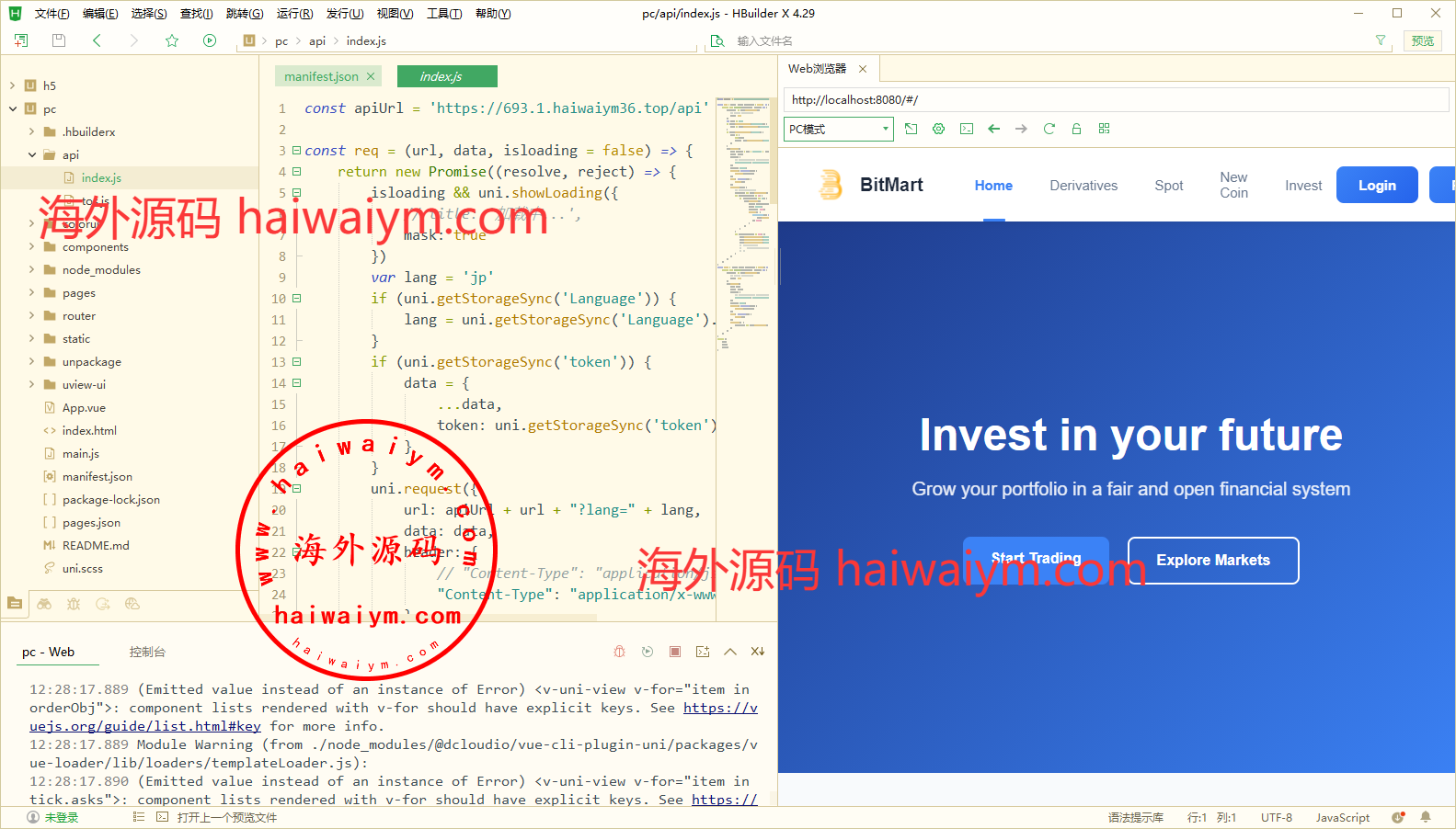 新版UI交易所系统,手机电脑uinapp开发,后端PHP的FastAdmin框架开源带教程