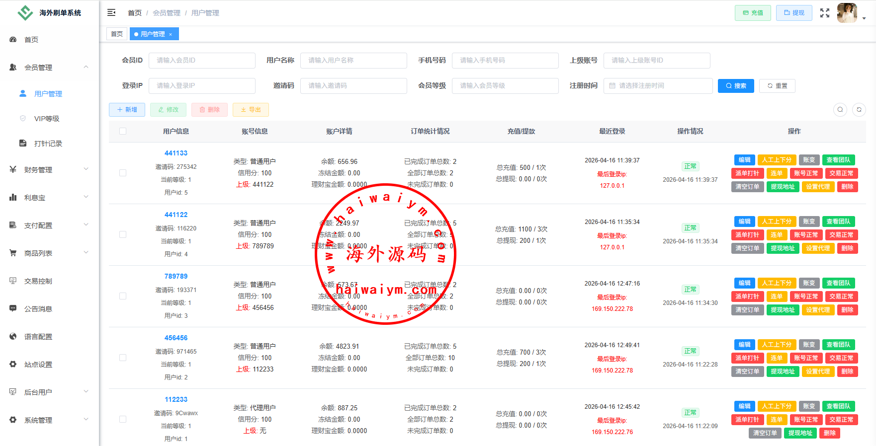 功能:金额打针,连单,信用分,重置订单,时区设置,余额宝,代理等诸多功能此套系统全开源功能可定制二开,源码不便宜嘴炮勿扰